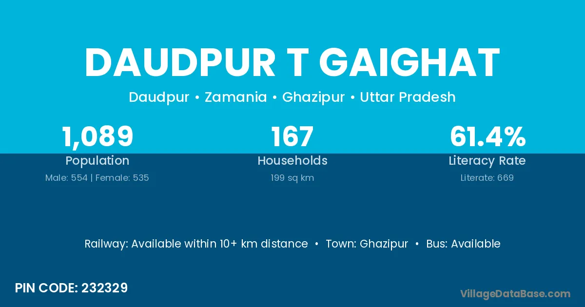 Ghazipur is the nearest town to Daudpur T Gaighat village for major economic activities