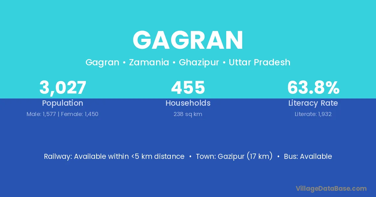 Gazipur (17 km) is the nearest town to Gagran village for major economic activities and is located approximately 17 km away.