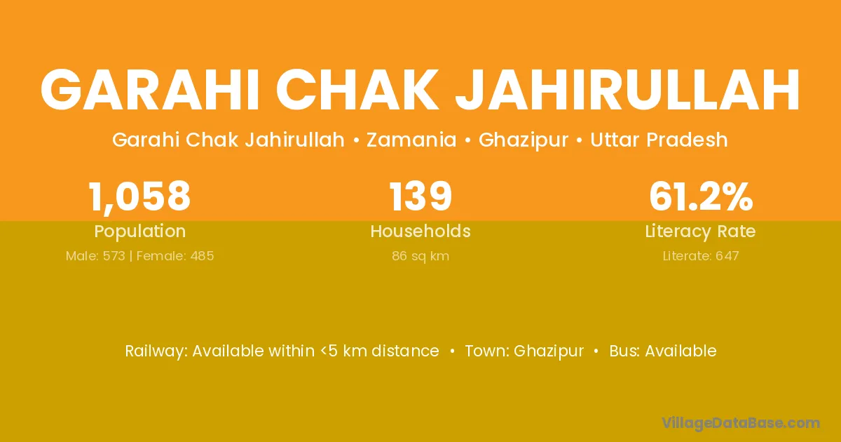 Garahi Chak Jahirullah village has a total population of 1,058 people, of which 573 are males and 485 are females.