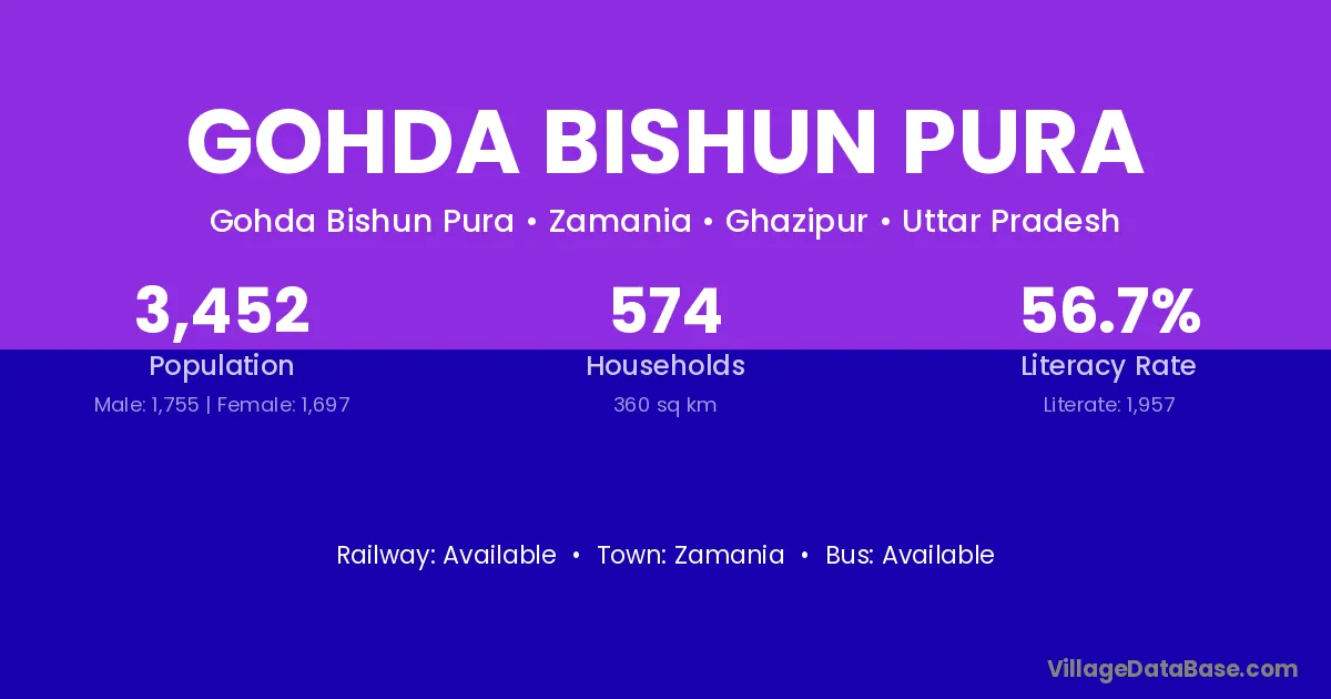 Zamania is the nearest town to Gohda Bishun Pura village for major economic activities