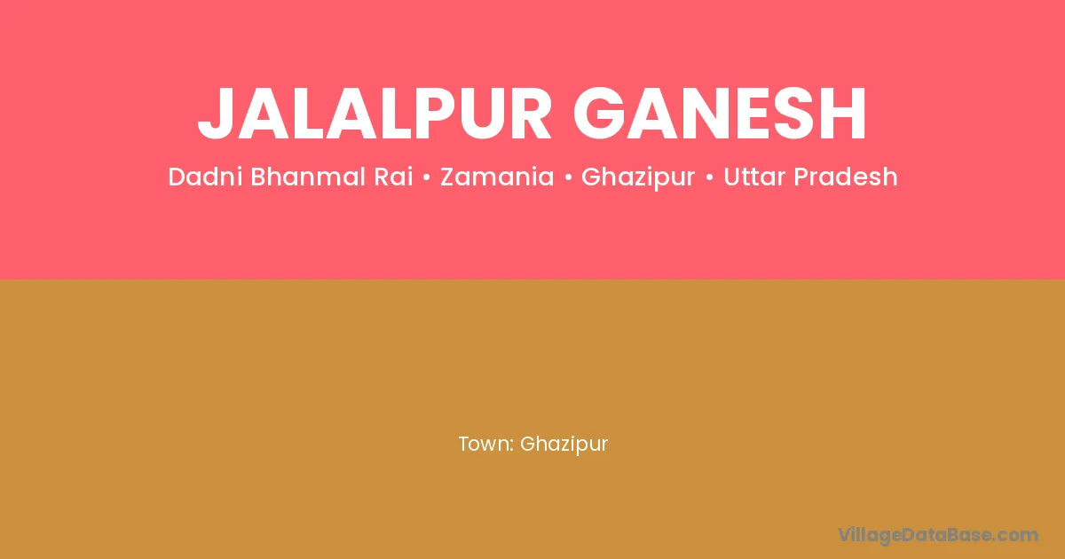Jalalpur Ganesh village is located in the Zamania Tehsil of the Ghazipur district in Uttar Pradesh .