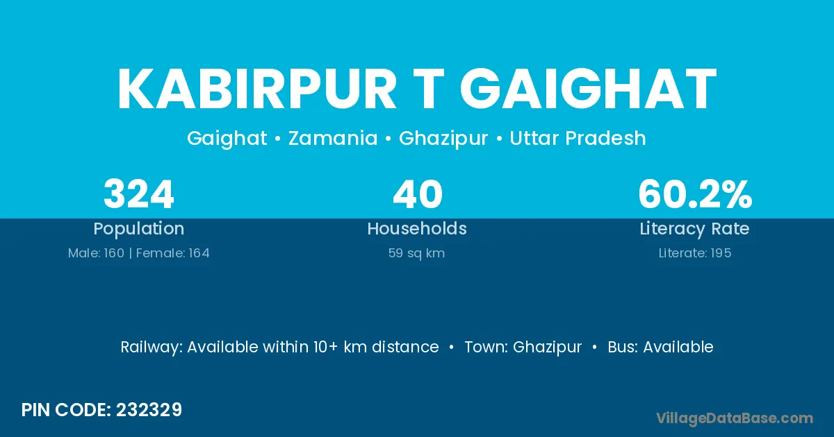 Kabirpur T Gaighat village has a total population of 324 people, of which 160 are males and 164 are females.
