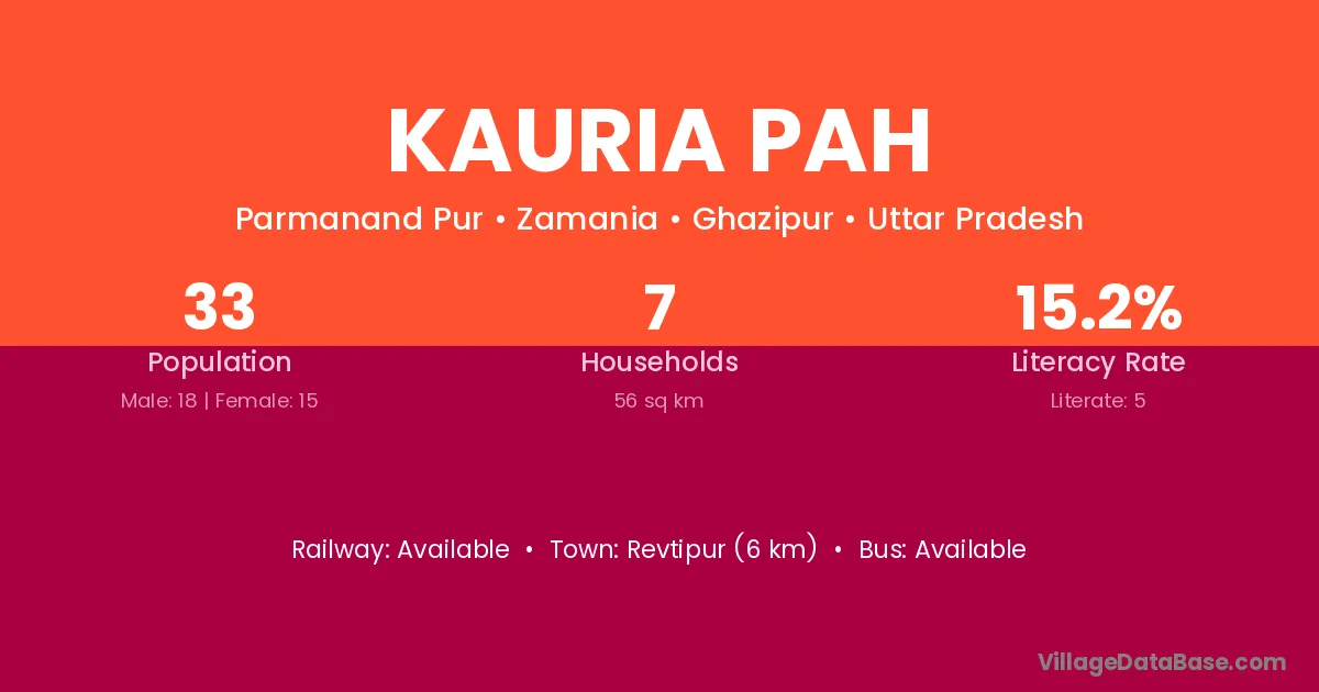 Kauria Pah village has a total population of 33 people, of which 18 are males and 15 are females.