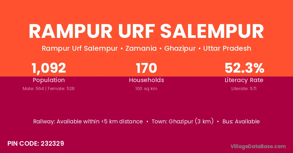 Rampur Urf Salempur village has a total population of 1,092 people, of which 564 are males and 528 are females.