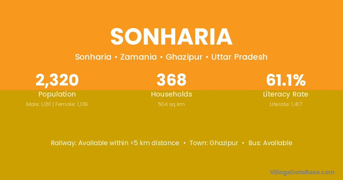 Sonharia village has a total population of 2,320 people, of which 1,181 are males and 1,139 are females.