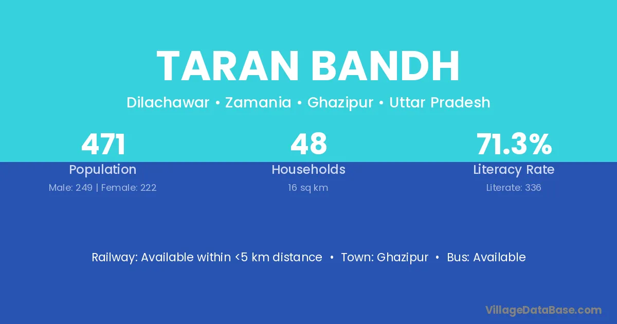 Ghazipur is the nearest town to Taran Bandh village for major economic activities