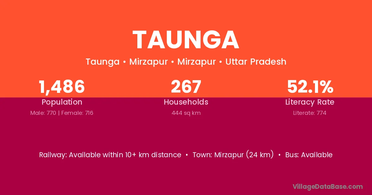 Taunga village has a total population of 1,400 people, of which 734 are males and 666 are females.