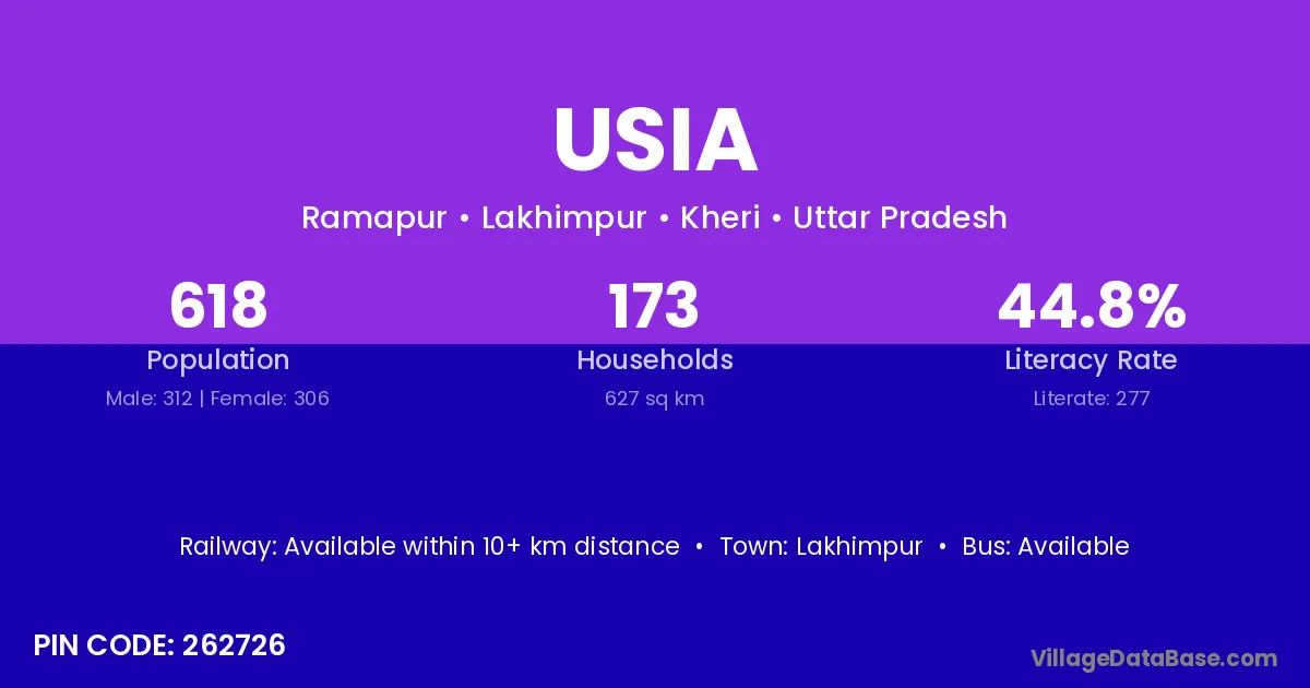Dildar Nagar (3 km) is the nearest town to Usia village for major economic activities and is located approximately 3 km away.
