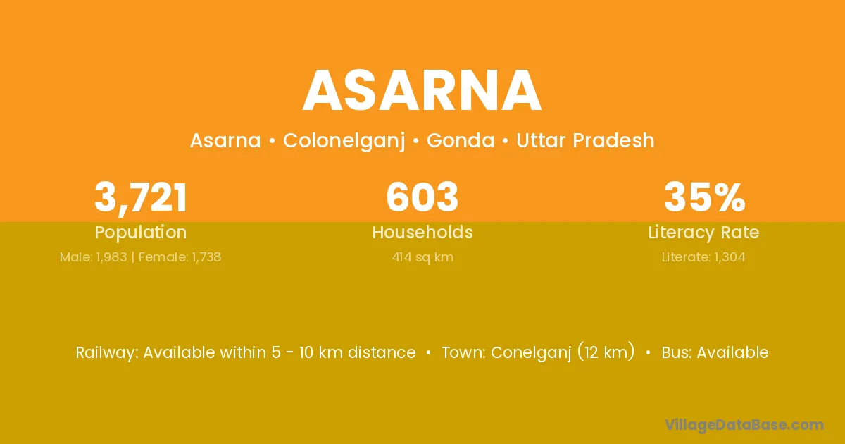 Conelganj (12 km) is the nearest town to Asarna village for major economic activities and is located approximately 12 km away.