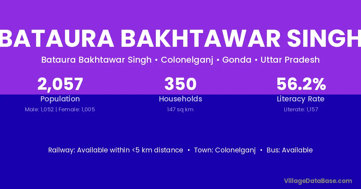 Bataura Bakhtawar Singh village has a total population of 2,057 people, of which 1,052 are males and 1,005 are females.