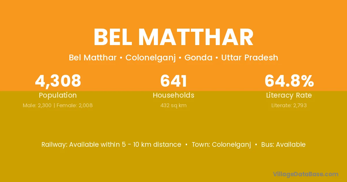 Bel Matthar village has a total population of 4,308 people, of which 2,300 are males and 2,008 are females.
