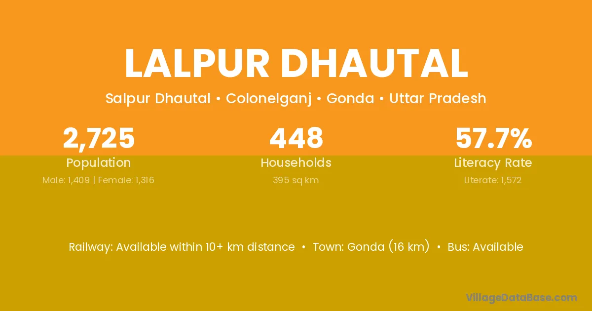 Gonda (16 km) is the nearest town to Lalpur Dhautal village for major economic activities and is located approximately 16 km away.
