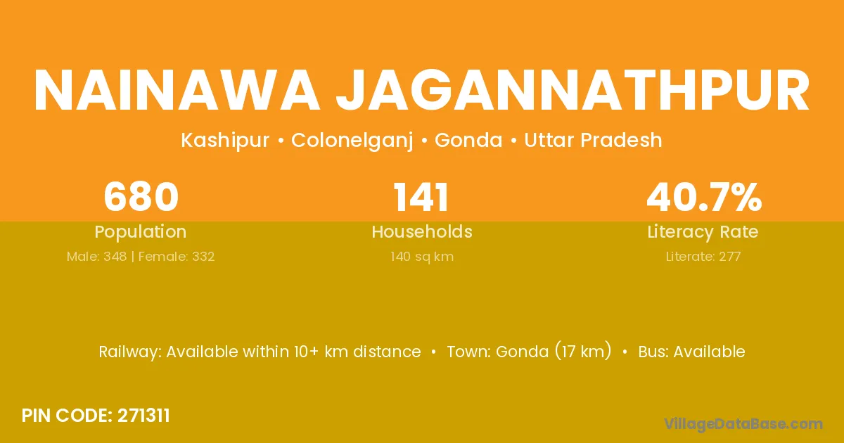 Gonda (17 km) is the nearest town to Nainawa Jagannathpur village for major economic activities and is located approximately 17 km away.