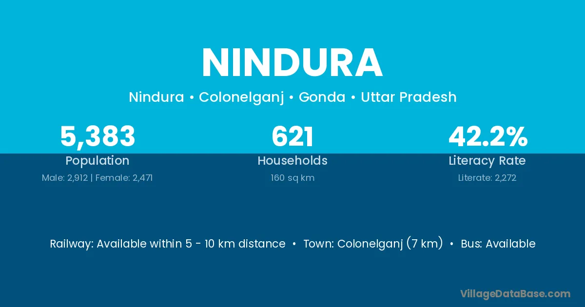 Colonelganj (7 km) is the nearest town to Nindura village for major economic activities and is located approximately 7 km away.