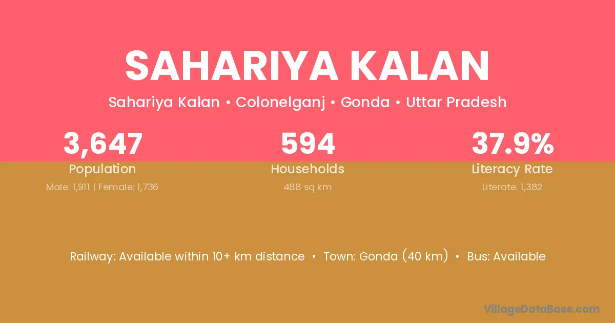 Gonda (40 km) is the nearest town to Sahariya Kalan village for major economic activities and is located approximately 40 km away.