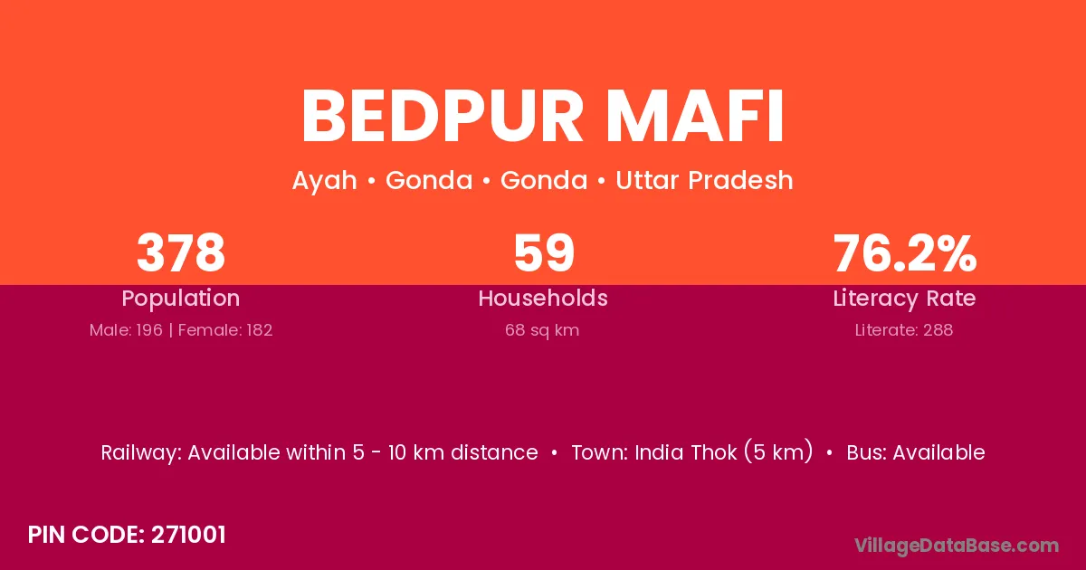 Bedpur Mafi village has a total population of 378 people, of which 196 are males and 182 are females.