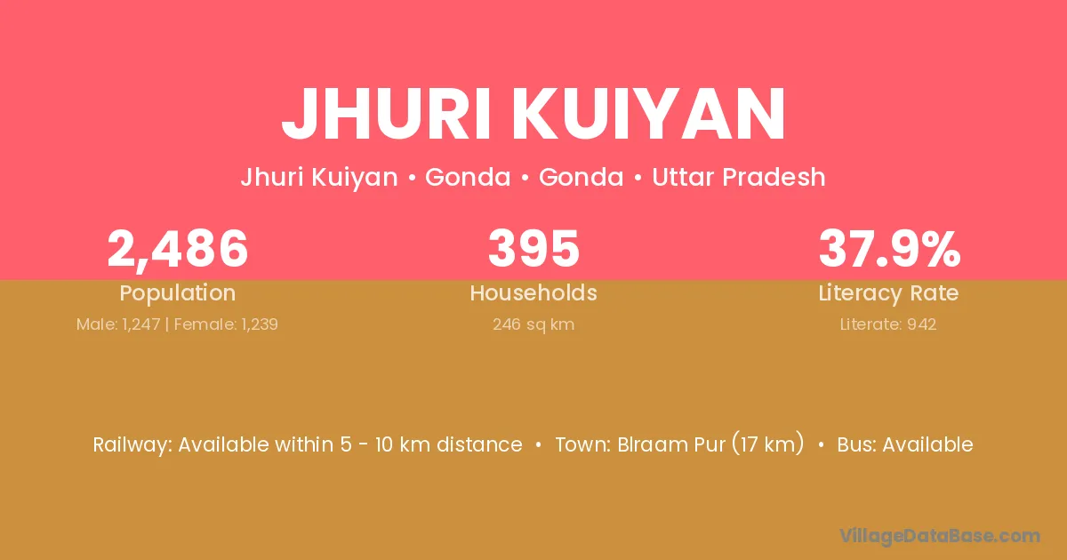 Jhuri Kuiyan village has a total population of 2,486 people, of which 1,247 are males and 1,239 are females.