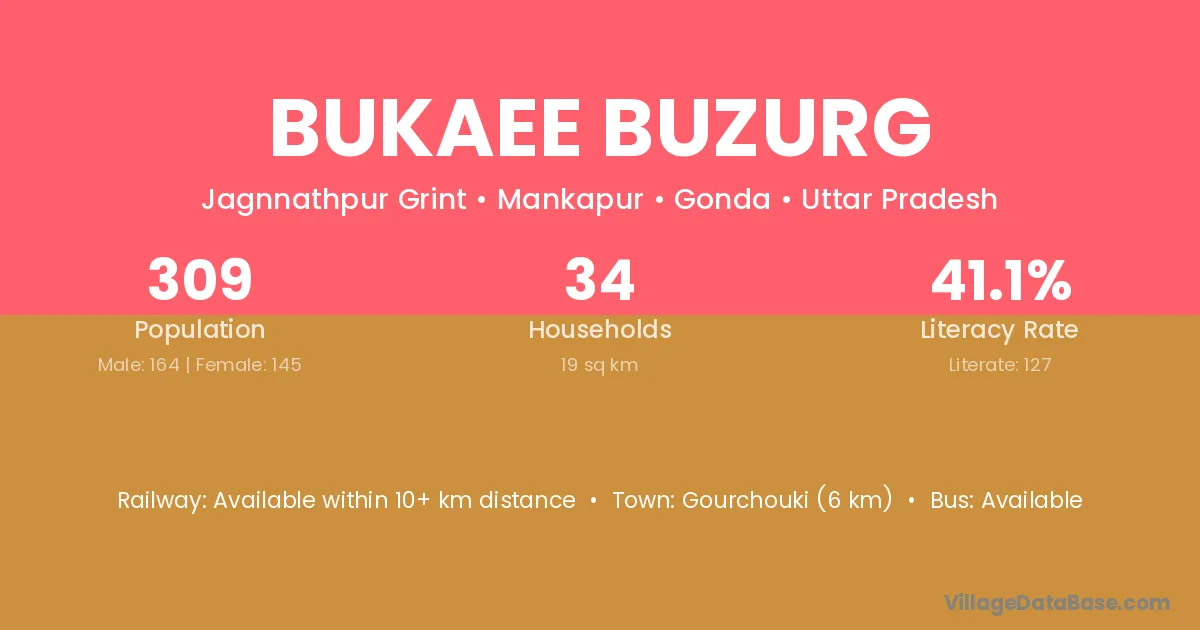 Bukaee Buzurg village has a total population of 309 people, of which 164 are males and 145 are females.