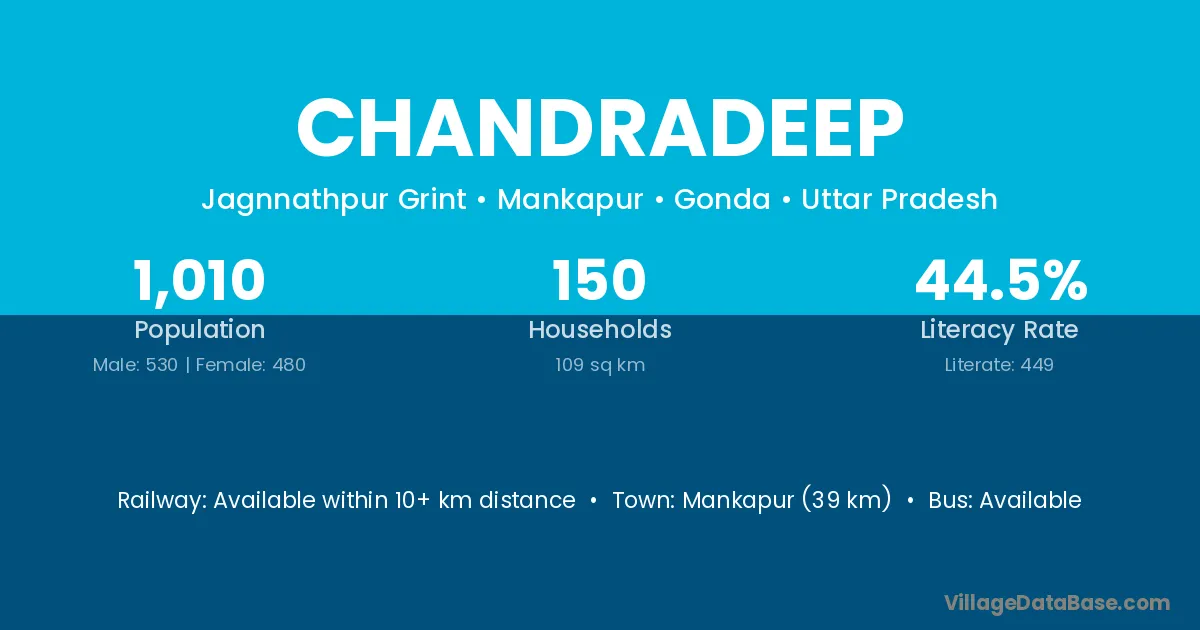 Mankapur (39 km) is the nearest town to Chandradeep village for major economic activities and is located approximately 39 km away.