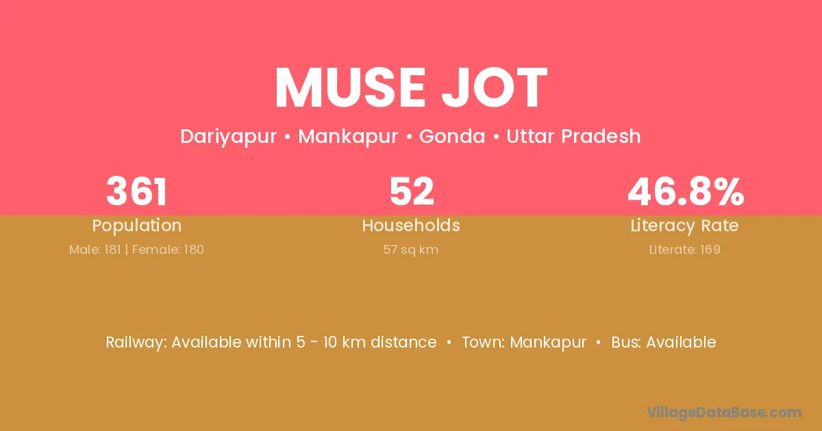 Muse Jot village is located in the Mankapur Tehsil of the Gonda district in Uttar Pradesh .