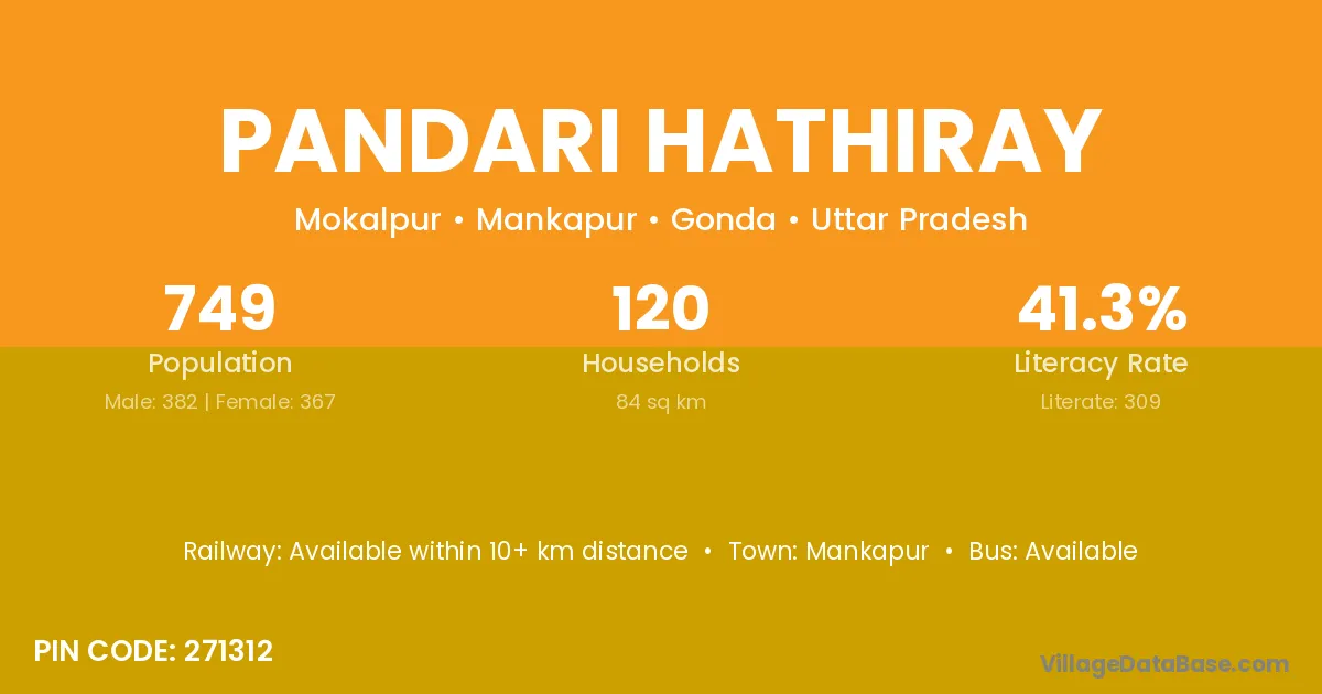 Pandari Hathiray village has a total population of 749 people, of which 382 are males and 367 are females.