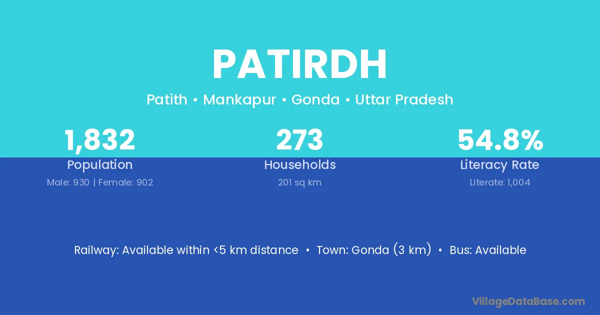 Gonda (3 km) is the nearest town to Patirdh village for major economic activities and is located approximately 3 km away.