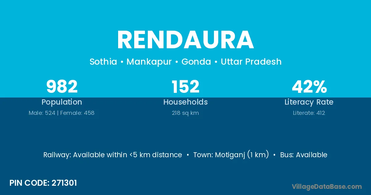 Motiganj (1 km) is the nearest town to Rendaura village for major economic activities and is located approximately 1 km away.