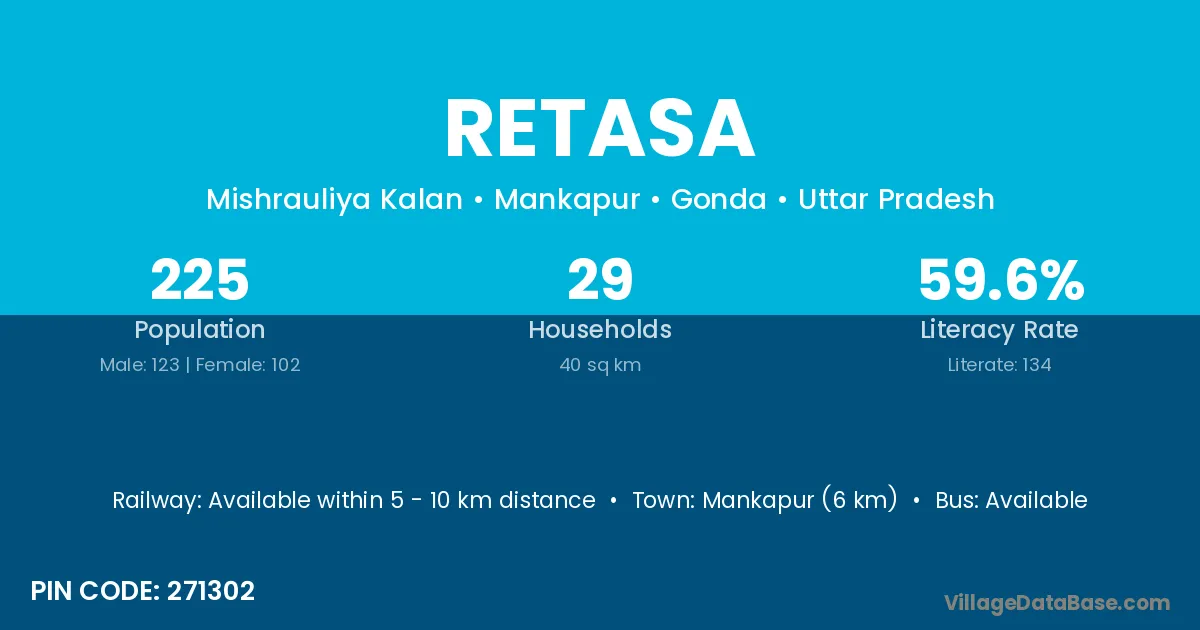 Mankapur (6 km) is the nearest town to Retasa village for major economic activities and is located approximately 6 km away.