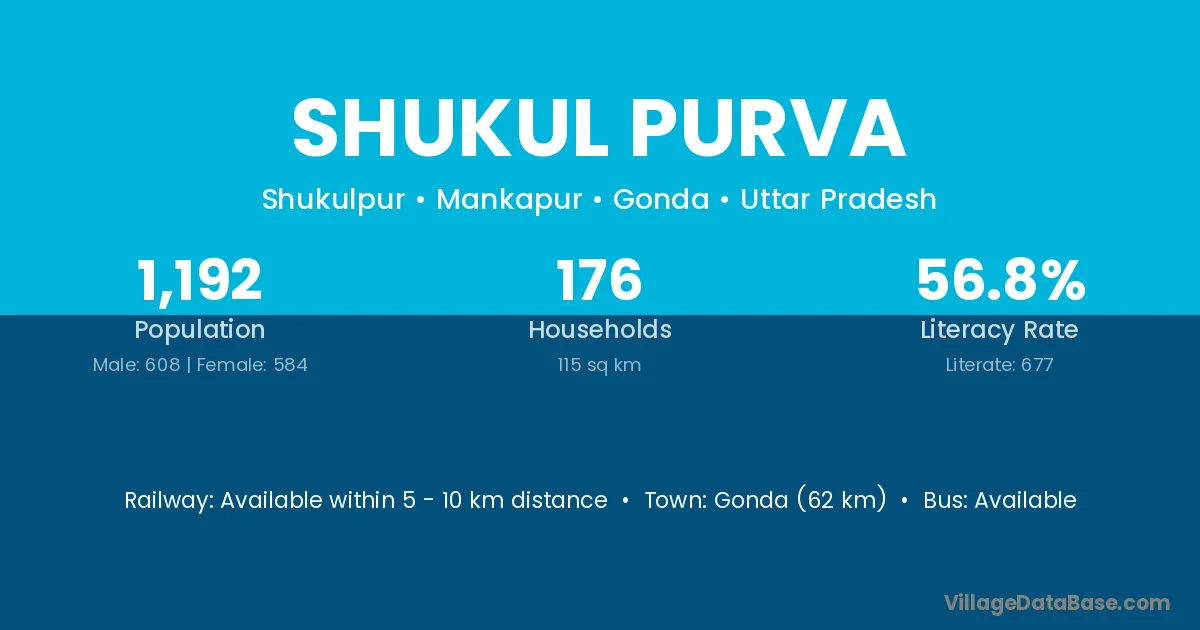 Gonda (62 km) is the nearest town to Shukul Purva village for major economic activities and is located approximately 62 km away.