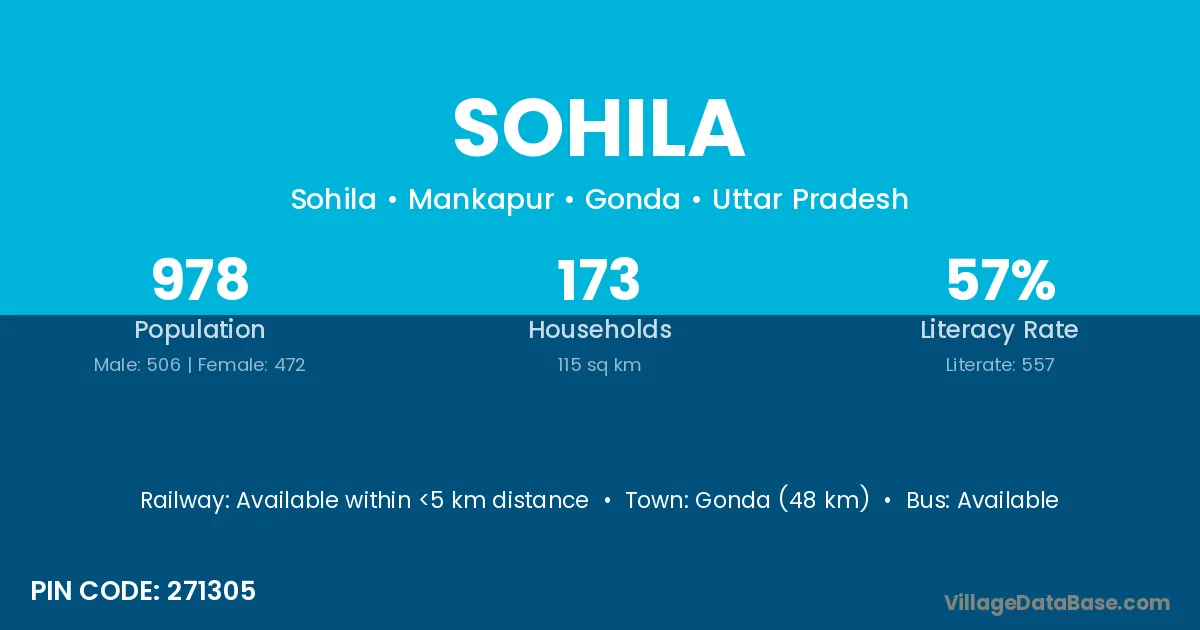 Gonda (48 km) is the nearest town to Sohila village for major economic activities and is located approximately 48 km away.