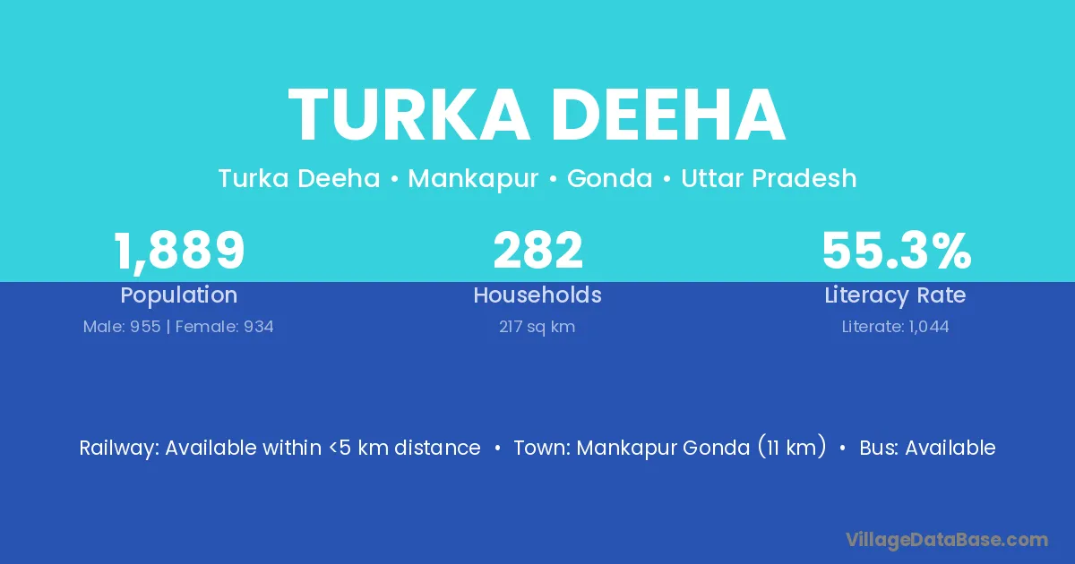 Mankapur Gonda (11 km) is the nearest town to Turka Deeha village for major economic activities and is located approximately 11 km away.