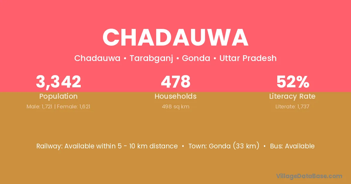 Gonda (33 km) is the nearest town to Chadauwa village for major economic activities and is located approximately 33 km away.