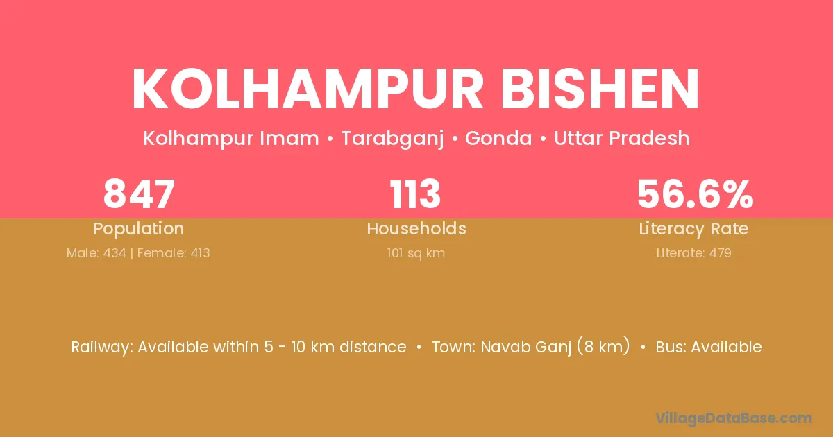 Navab Ganj (8 km) is the nearest town to Kolhampur Bishen village for major economic activities and is located approximately 8 km away.