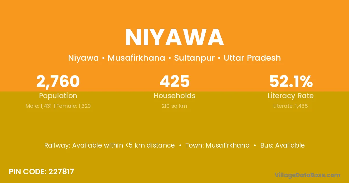 Gonda (35 km) is the nearest town to Niyawa village for major economic activities and is located approximately 35 km away.