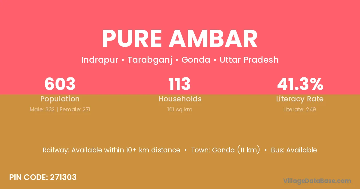 Pure Ambar village has a total population of 603 people, of which 332 are males and 271 are females.