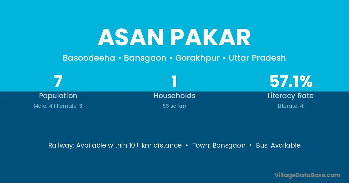Bansgaon is the nearest town to Asan Pakar village for major economic activities