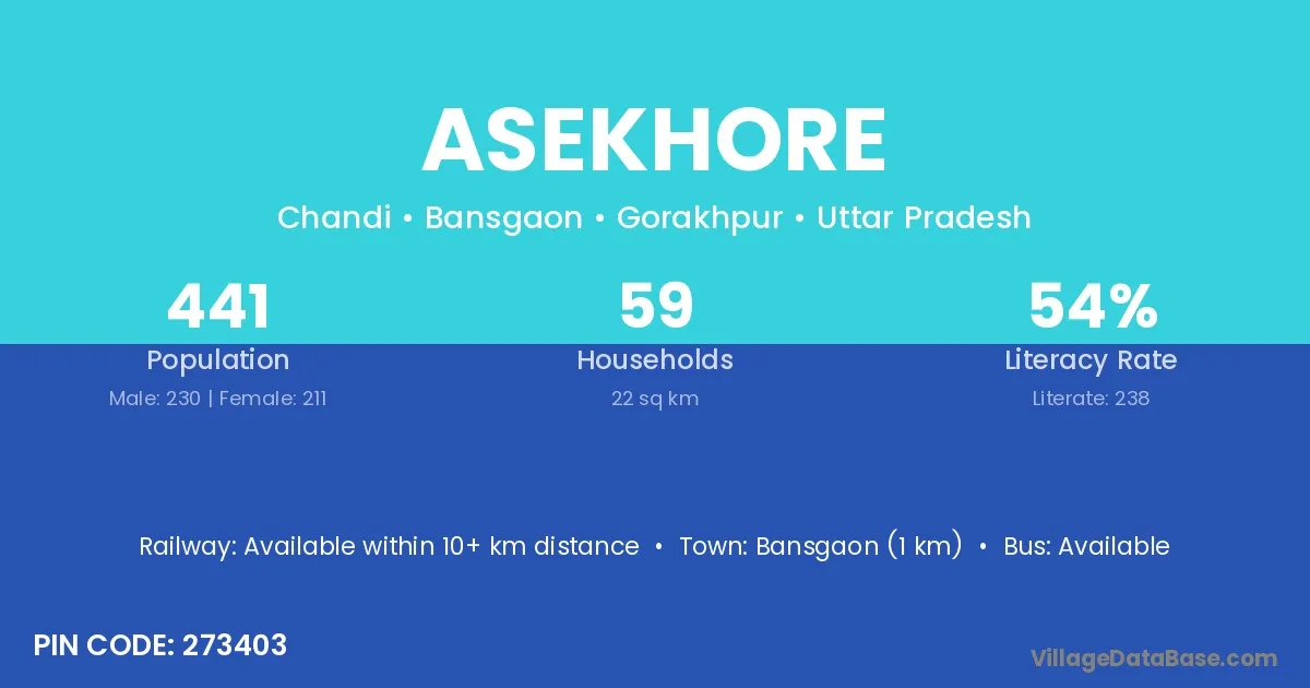 Bansgaon (1 km) is the nearest town to Asekhore village for major economic activities and is located approximately 1 km away.