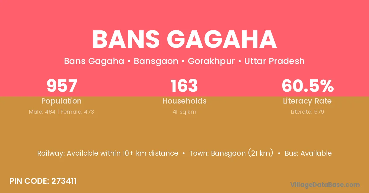 Bans Gagaha village has a total population of 957 people, of which 484 are males and 473 are females.