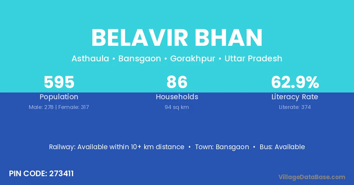 Bansgaon is the nearest town to Belavir Bhan village for major economic activities