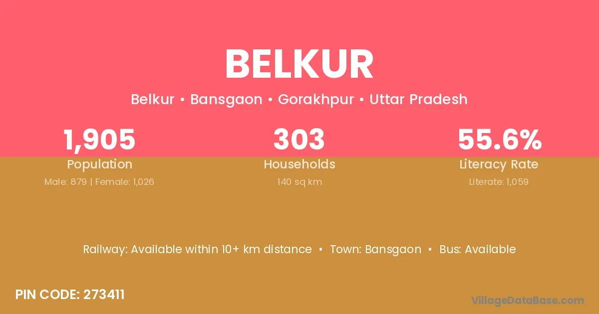 Bansgaon is the nearest town to Belkur village for major economic activities