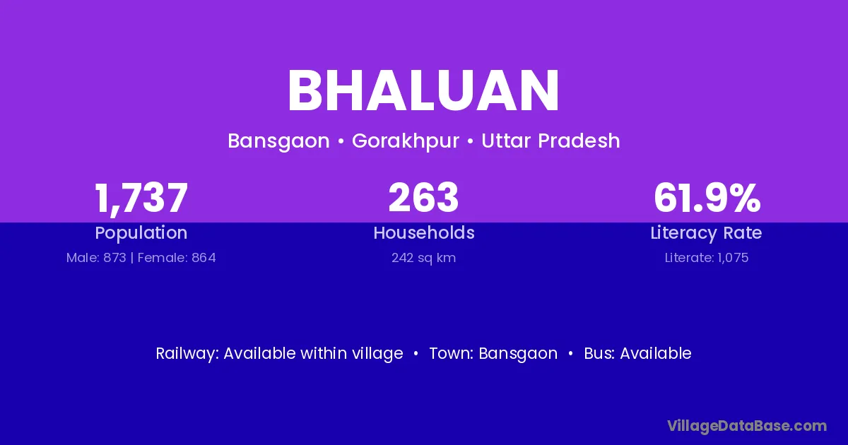 Bhaluan village has a total population of 1,737 people, of which 873 are males and 864 are females.