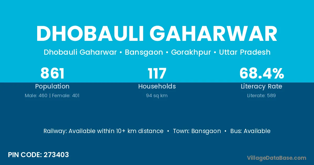 Bansgaon is the nearest town to Dhobauli Gaharwar village for major economic activities