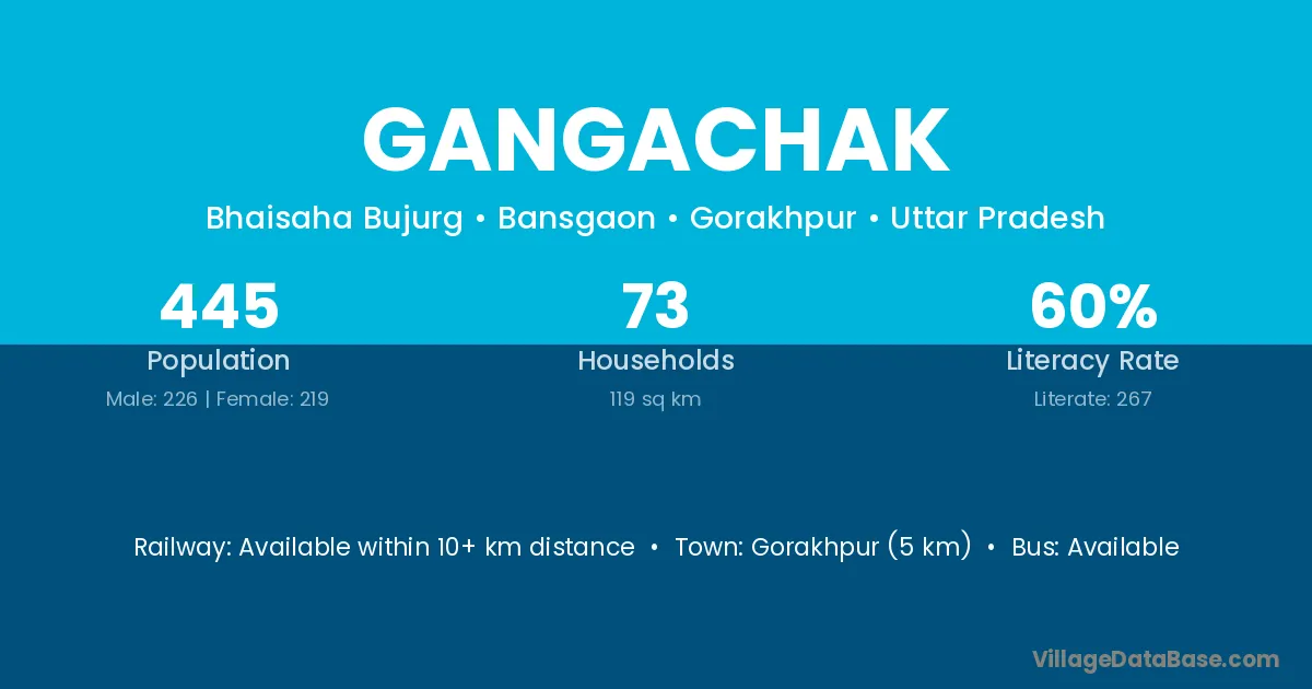 Gangachak village has a total population of 445 people, of which 226 are males and 219 are females.