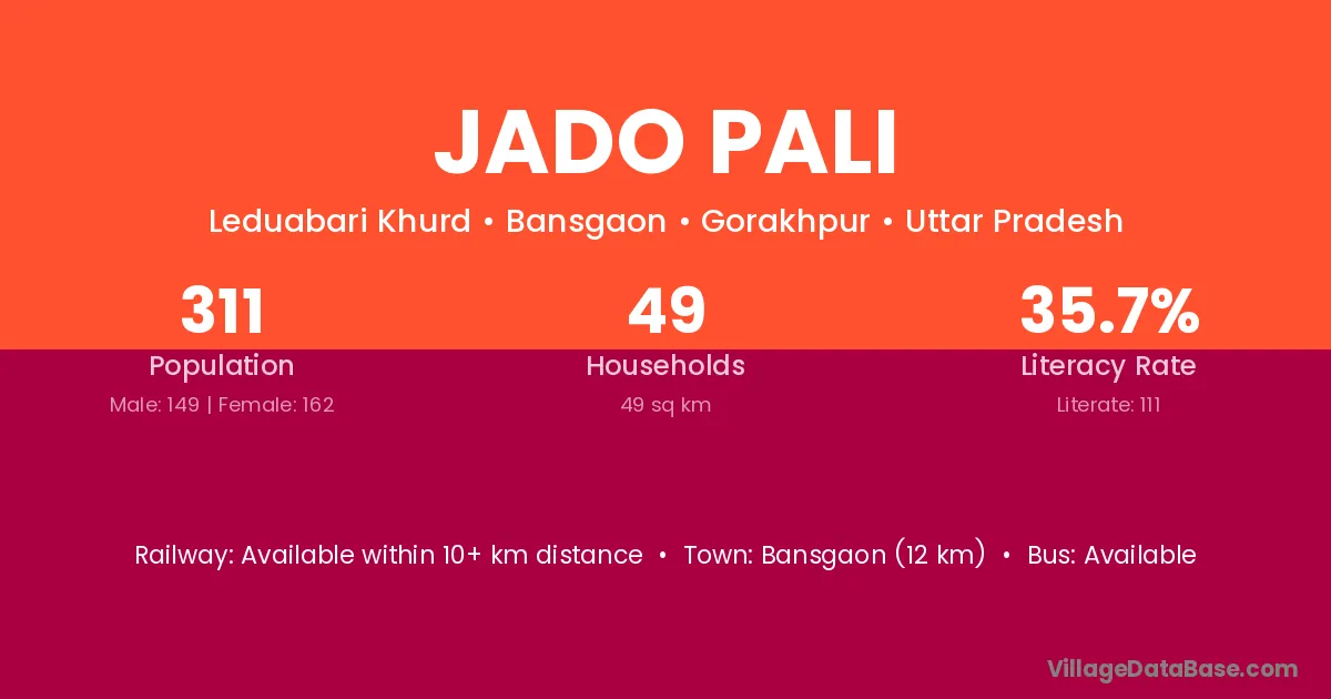 Bansgaon (12 km) is the nearest town to Jado Pali village for major economic activities and is located approximately 12 km away.