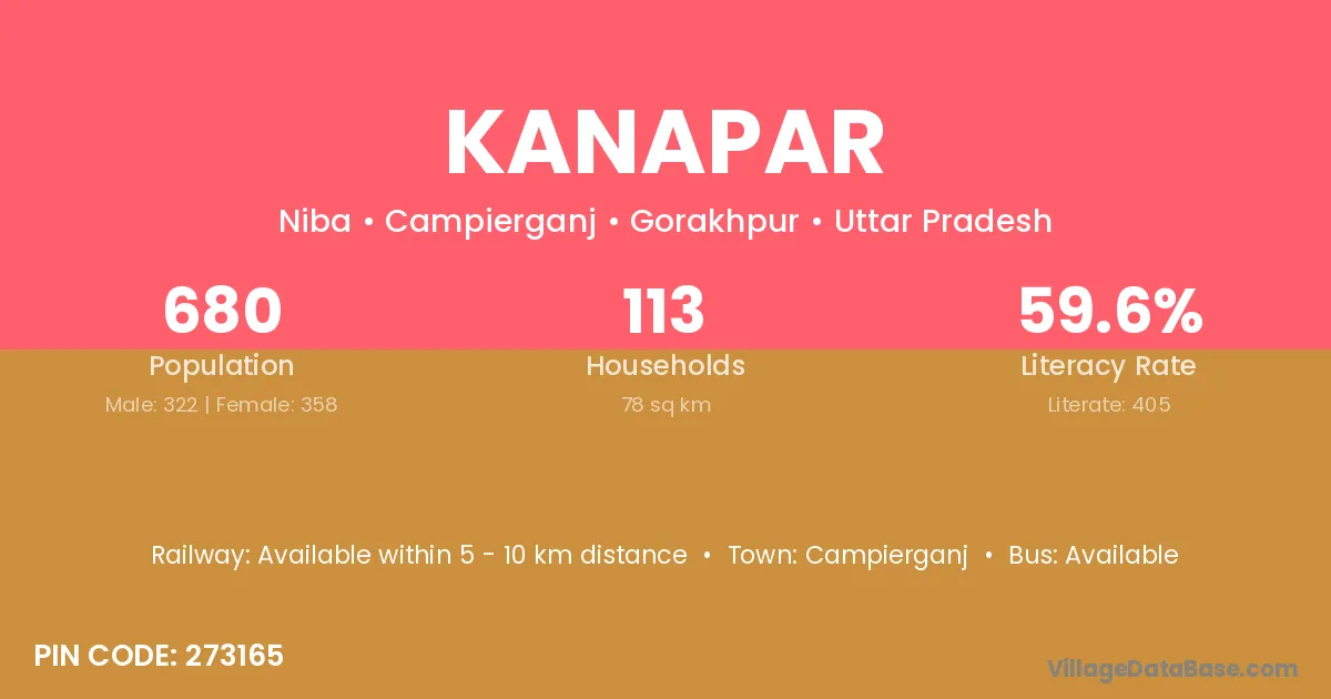 Kanapar village has a total population of 725 people, of which 369 are males and 356 are females.