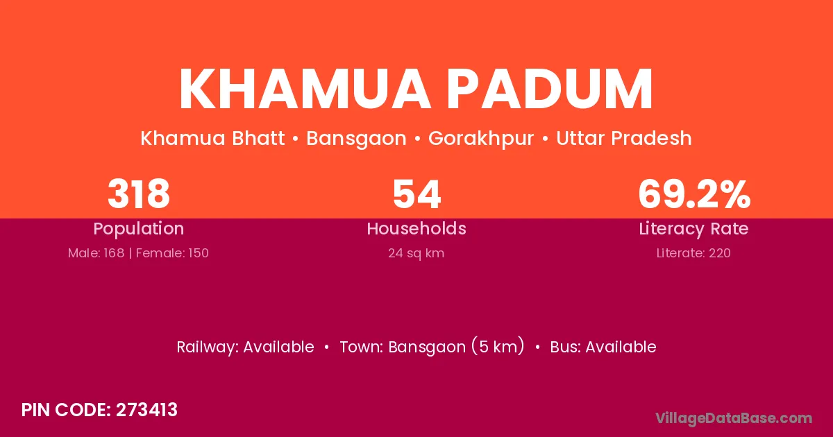 Bansgaon (5 km) is the nearest town to Khamua Padum village for major economic activities and is located approximately 5 km away.