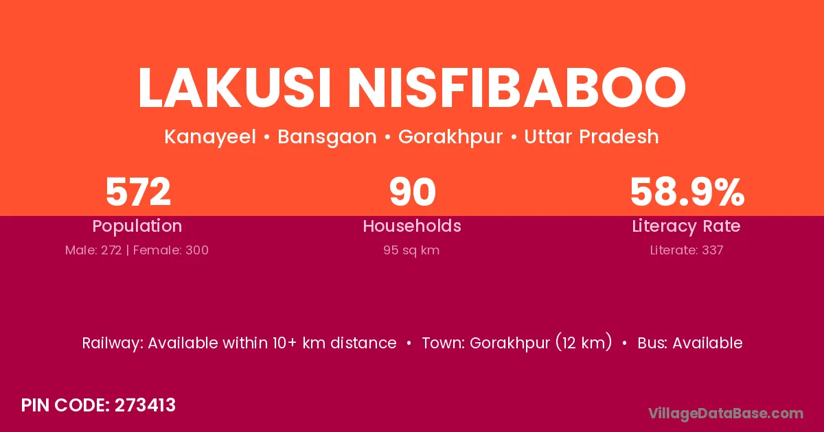 Gorakhpur (12 km) is the nearest town to Lakusi Nisfibaboo village for major economic activities and is located approximately 12 km away.