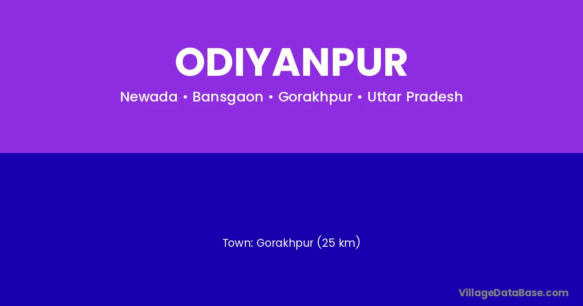 Gorakhpur (25 km) is the nearest town to Odiyanpur village for major economic activities and is located approximately 25 km away.