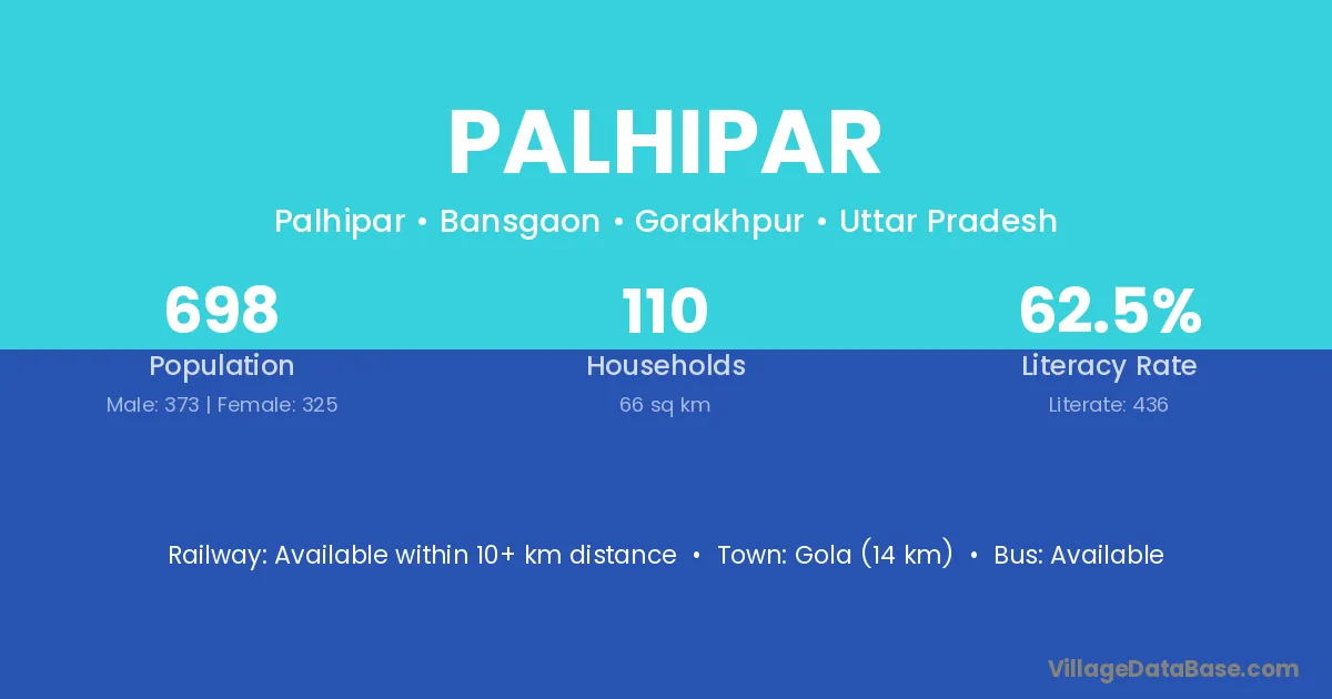 Gola (14 km) is the nearest town to Palhipar village for major economic activities and is located approximately 14 km away.