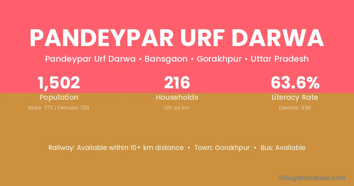Pandeypar Urf Darwa village has a total population of 1,502 people, of which 773 are males and 729 are females.